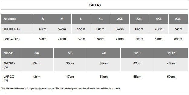 Si necesitas un talla más grande de una 2XL, contáctanos vía email.