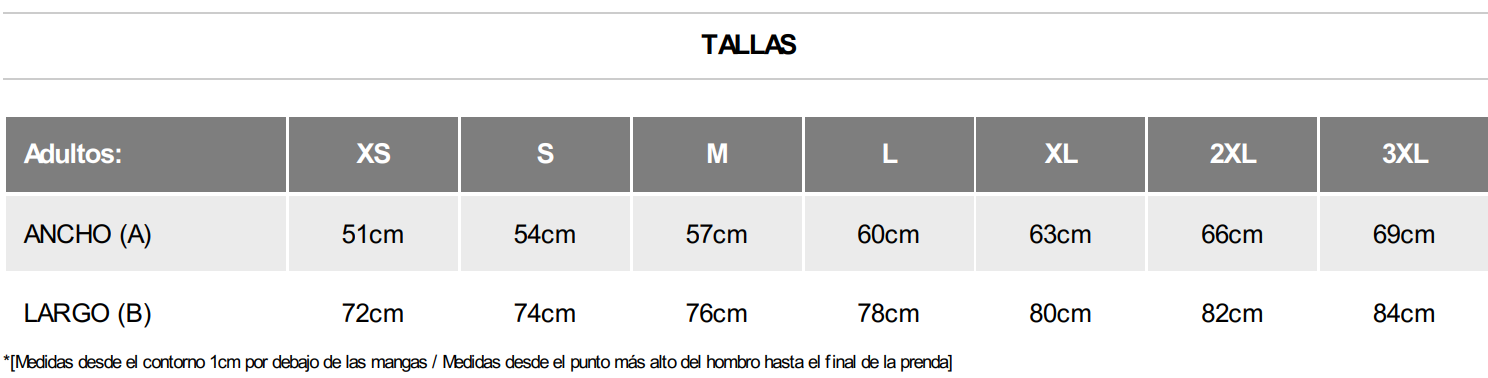 - Unisex: Ver tabla de tallas, talla más grande de lo habitual.