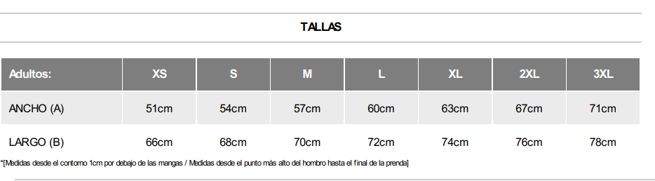Si necesitas un talla más grande de una 2XL, contáctanos vía email.